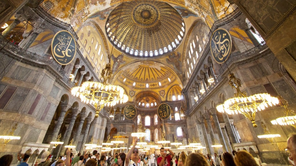 Hagia Sophia vốn là đền thờ của Kitô giáo, xây hồi thế kỷ thứ VI. Sau khi chiếm đoạt thành Constantinople, nay là Istanbul, đế quốc Ottoman đã biến thánh đường Kitô này thành một đền thờ Hồi giáo, hồi năm 1453. Dưới thời ông Mustafa Kemal, người thành lập cộng hòa Thổ Nhĩ Kỳ, đền thờ này bị biến thành một bảo tàng viện hồi năm 1934 và kéo dài đến nay. Nay tổng thống Erdogan chủ trương biến viện bảo tàng này thành đền thờ Hồi giáo, mặc dù dư luận nhiều nơi phản đối mạnh mẽ.